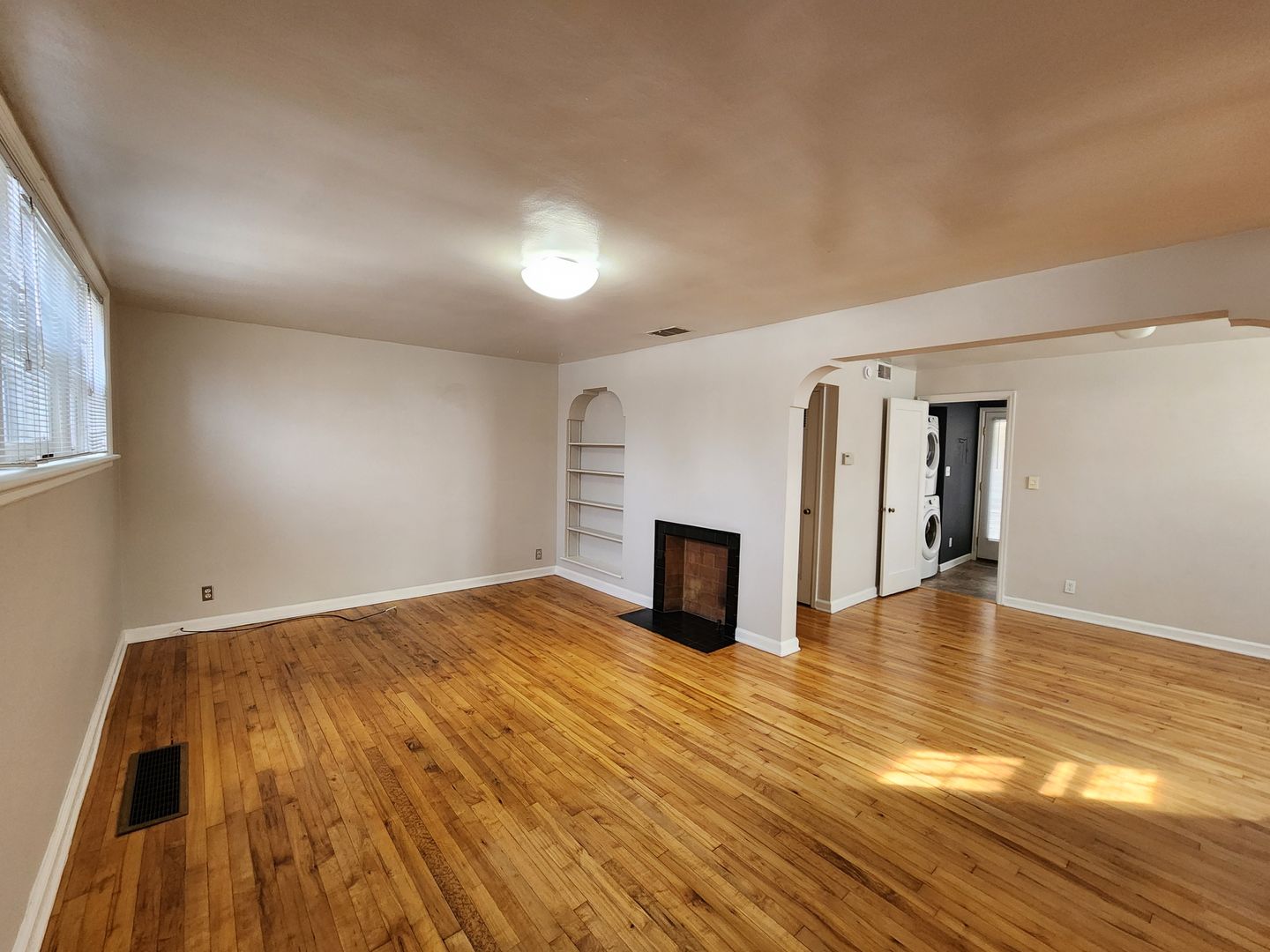 Spacious garden level one bedroom. Stackable washer and dryer included. Gorgeous REAL hardwood and new carpet. VERY bright - lighting from three directions, vintage deco details throughout - custom tile work, stepped deco archways, storm windows, spacious open living room, dining room, large cedar closet in bedroom, extra deep storage closet off living room, private front & back entrance, Separate single car garage INCLUDED- with locking garage door and another large additional storage area built in.